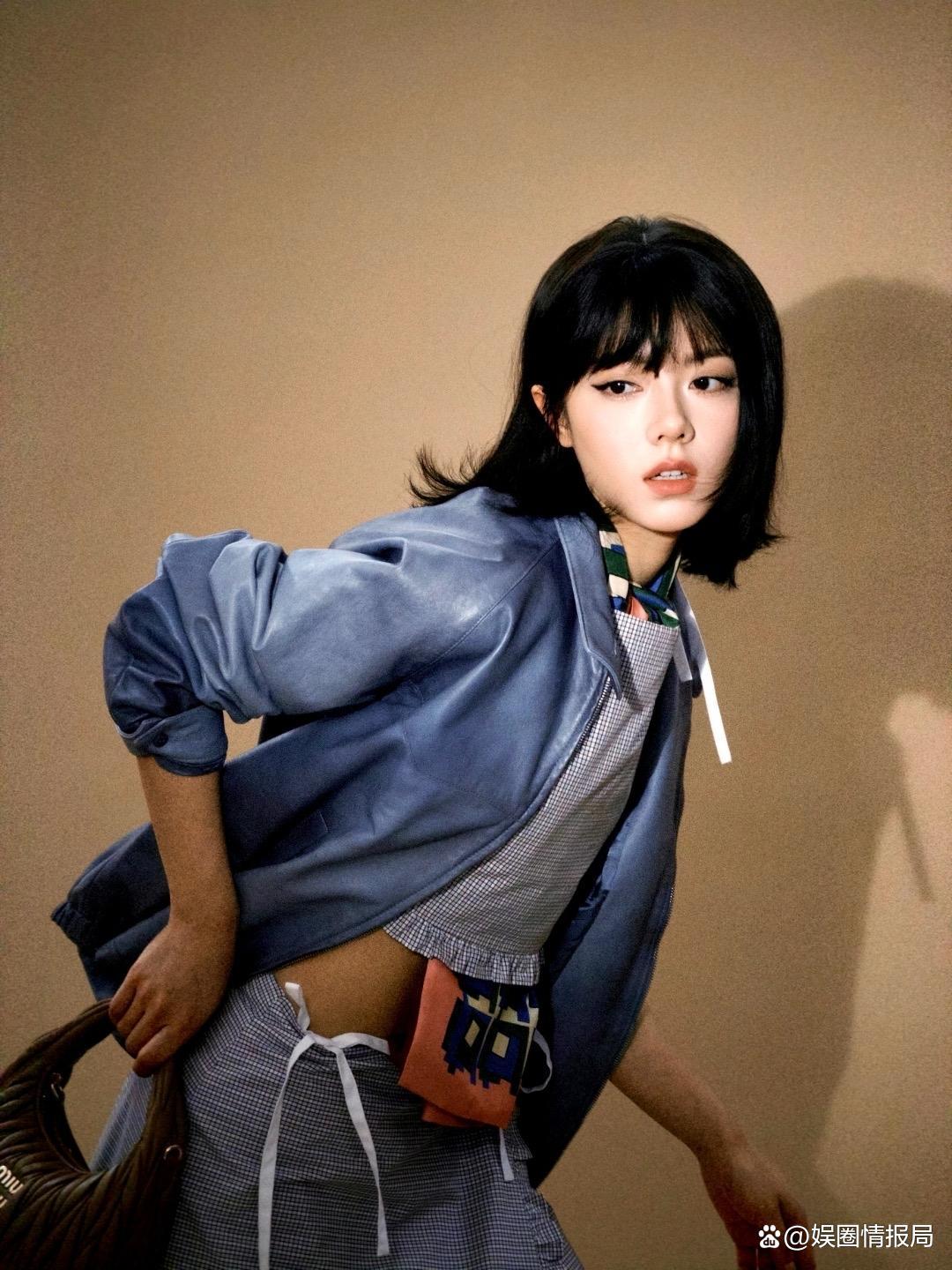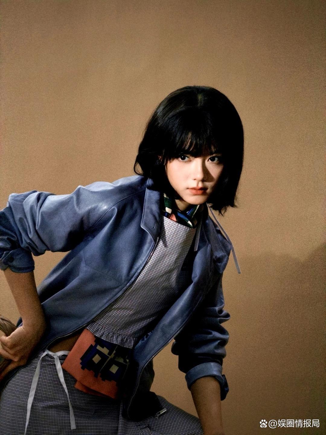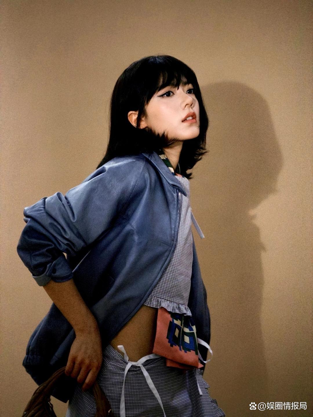 在这场审美大战中,赵今麦的造型团队给出了破局之道——蓝皮夹克的硬朗与格纹套装的复古碰撞,短发的利落与眼神的灵动交织,形成“甜酷共生”的独特风格。这不是简单的“去甜美化”,而是对少女感的重新诠释:真正的少女感,从来不是单一的甜美,而是敢于突破、多元融合的生命力。
